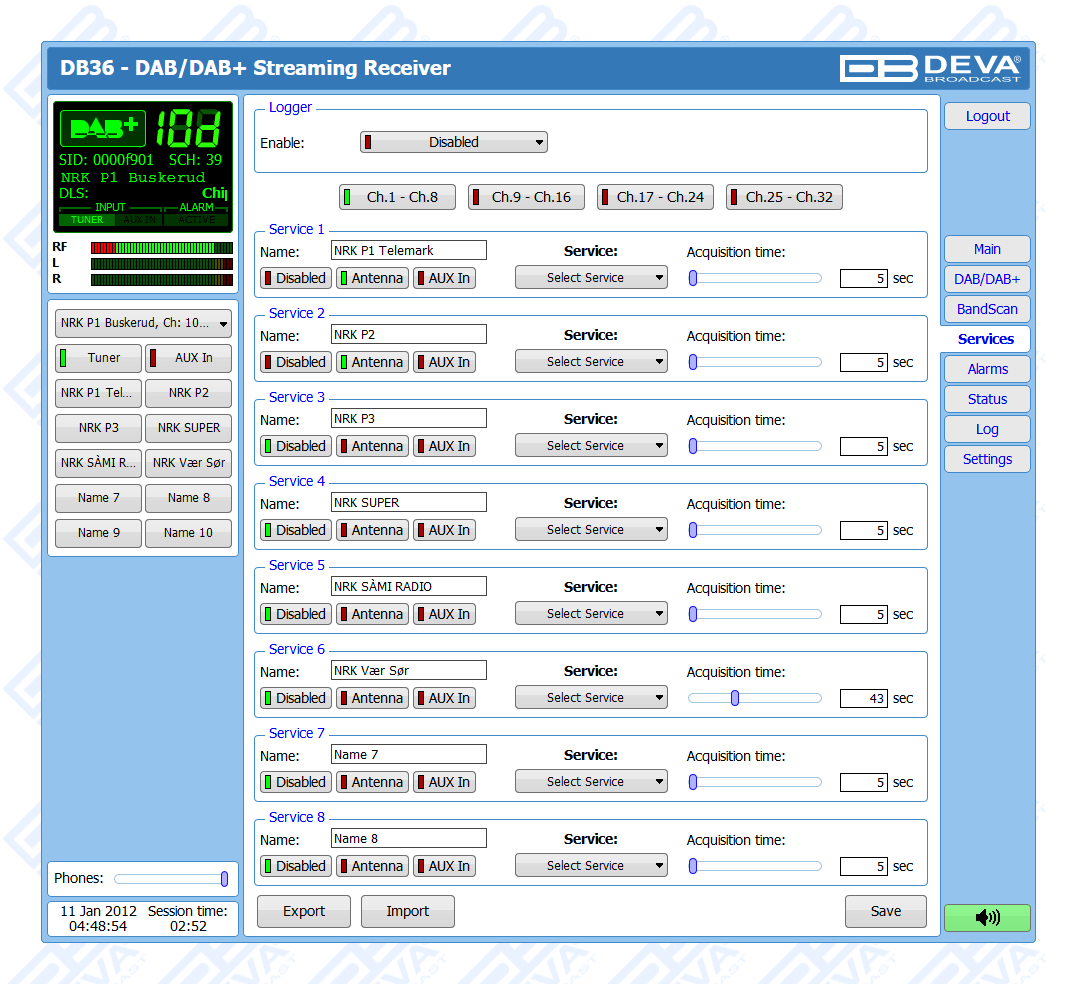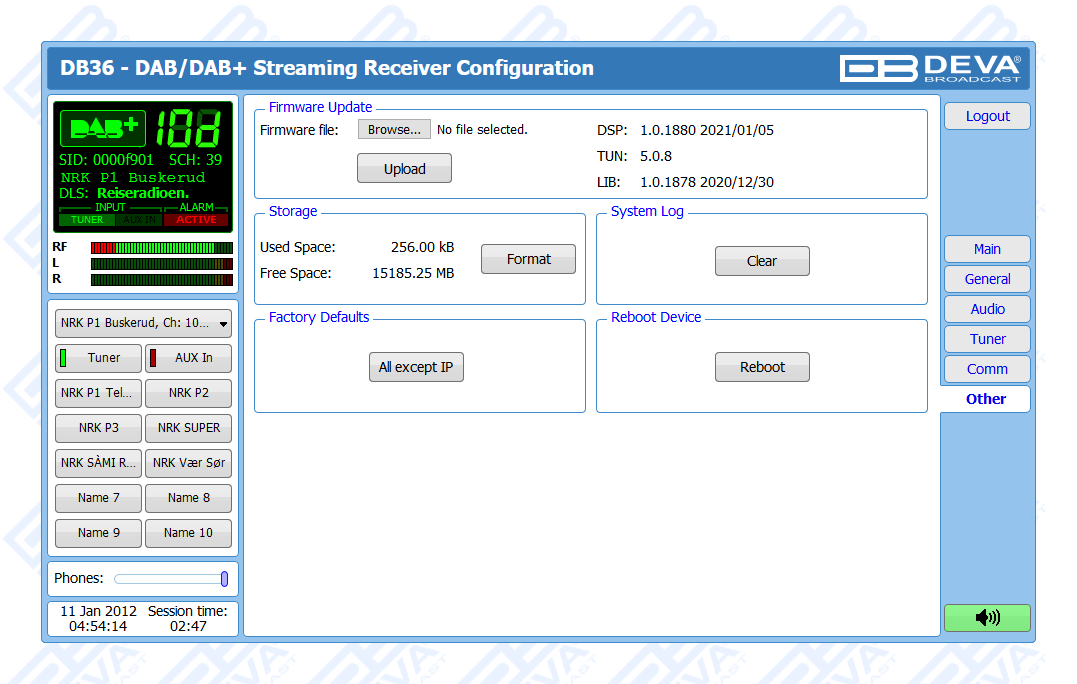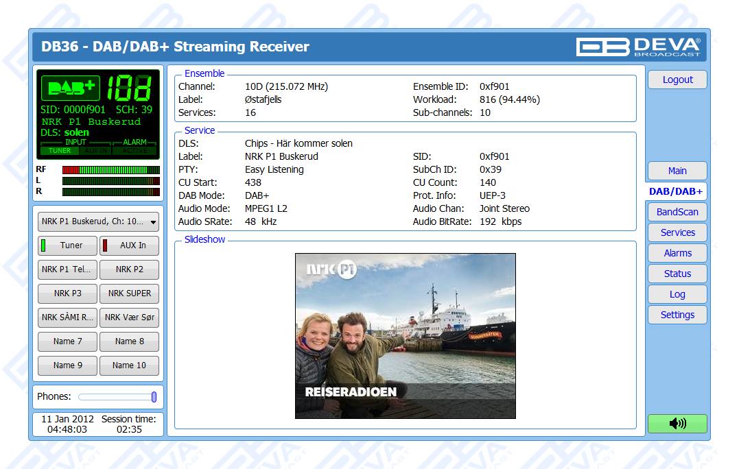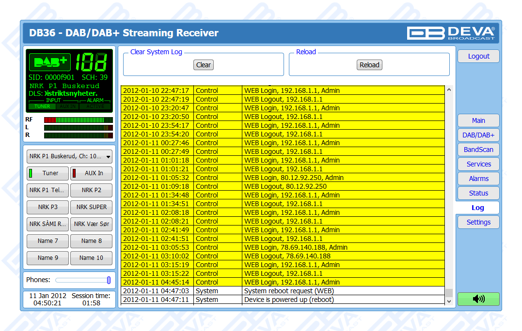 One of the main features of the DB36 is the fact that this tool guarantees no interruption of the broadcast signal. This is achieved through the provided local alarm options and online notifications via rear-panel alarm GPOs, E-mail and SNMP in case there is audio loss or change in the DAB signal and the Left and Right Audio Levels. This allows for a fast response on the part of the maintenance staff so that prolonged signal loss can be prevented.