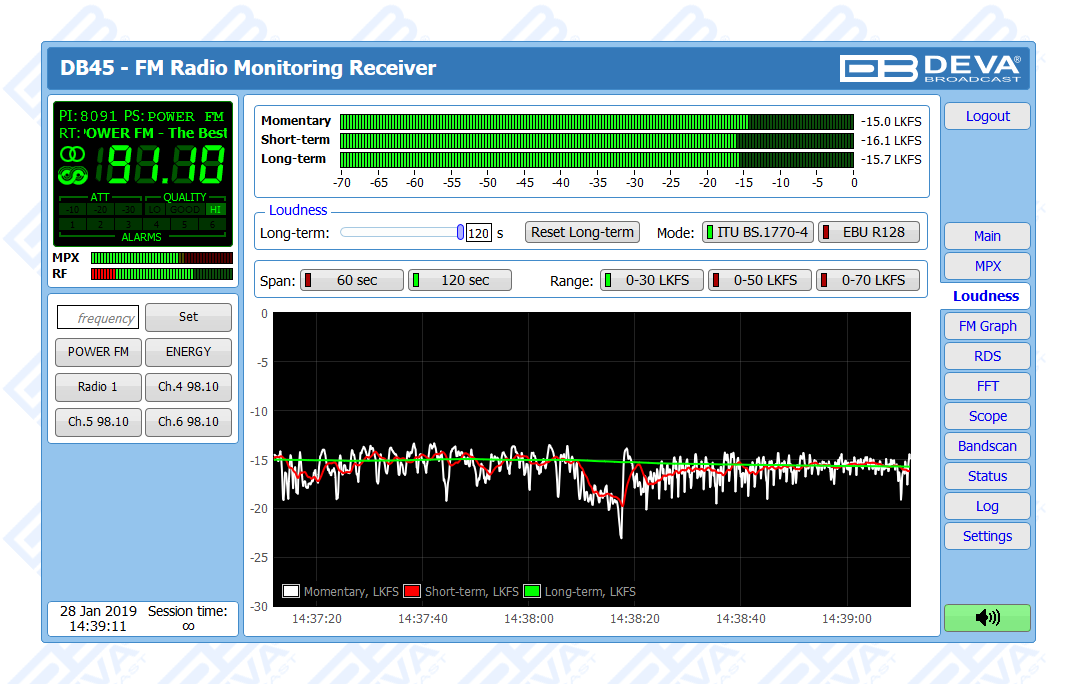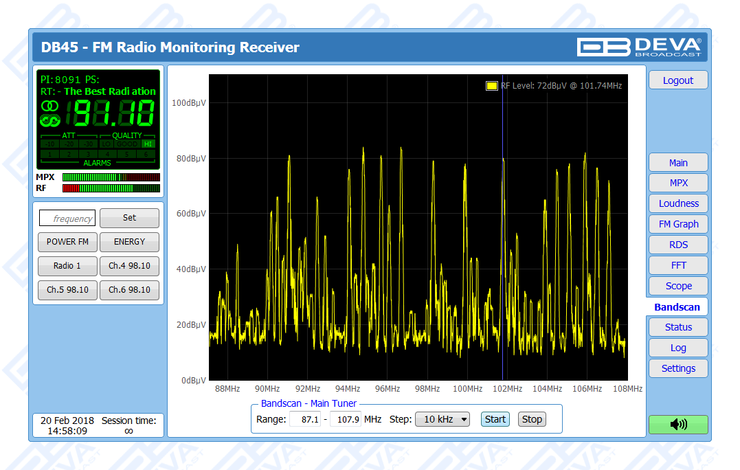 The DB45 supports TCP/IP and optional GSM connectivity, allowing for easy monitoring of the channel status and listening to real-time audio no matter where you are - all that is required is a mobile phone. Another impressive feature of this tool is the built-in audio streamer which gives users the opportunity to listen to and record the audio from any station.
