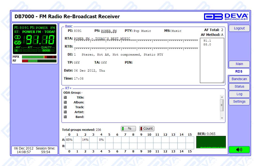 - RDS and RBDS decoder with BER meter