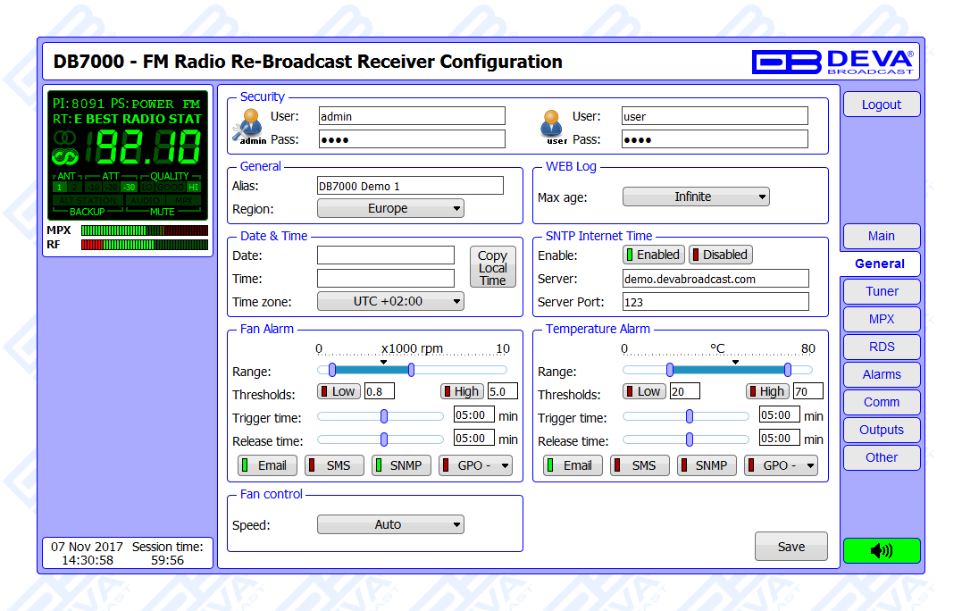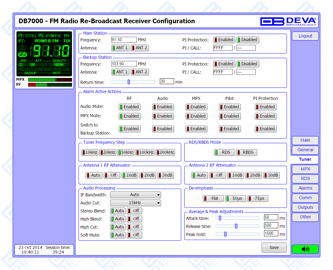 Another impressive addition to DB7000’s features is the backup station. In case of an alarm event, the unit will not only notify the maintenance staff but will also switch automatically to the backup station once the event is registered. Thus, audio loss for extended period if problem with the main station is evident will be prevented.
