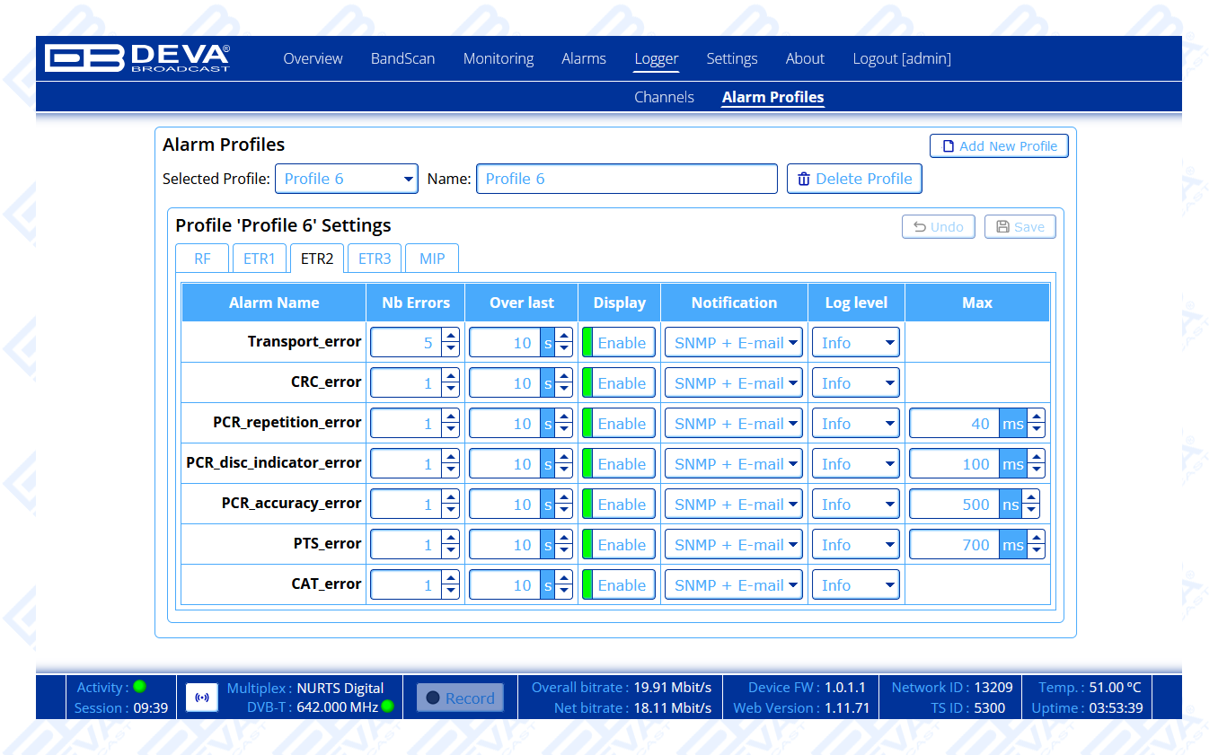 - Advanced MPEG Monitoring and PID Alarms