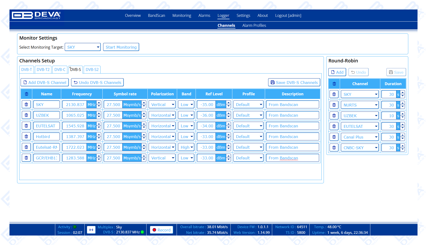 | Round-Robin Logger | Monitor sequentially multiple channel frequencies or PLPs |