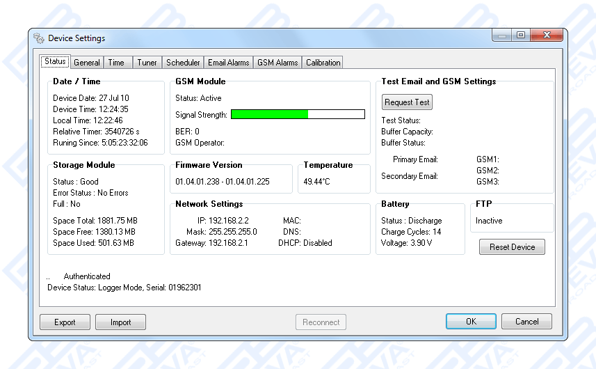- Alarm dispatch via E-mail and/or SMS