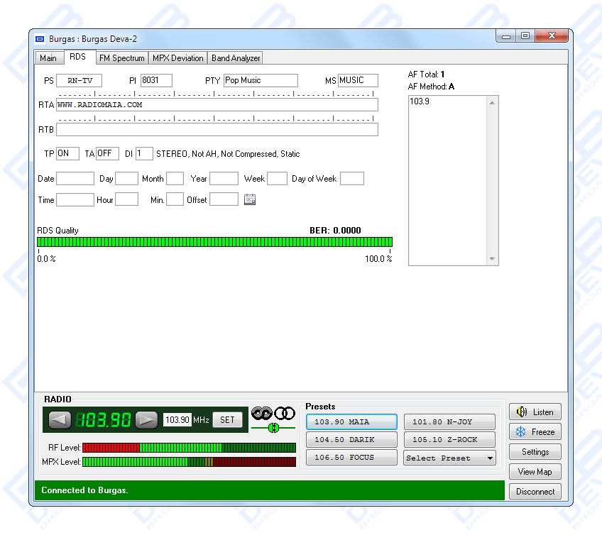 - RDS and RBDS decoder with BER meter
