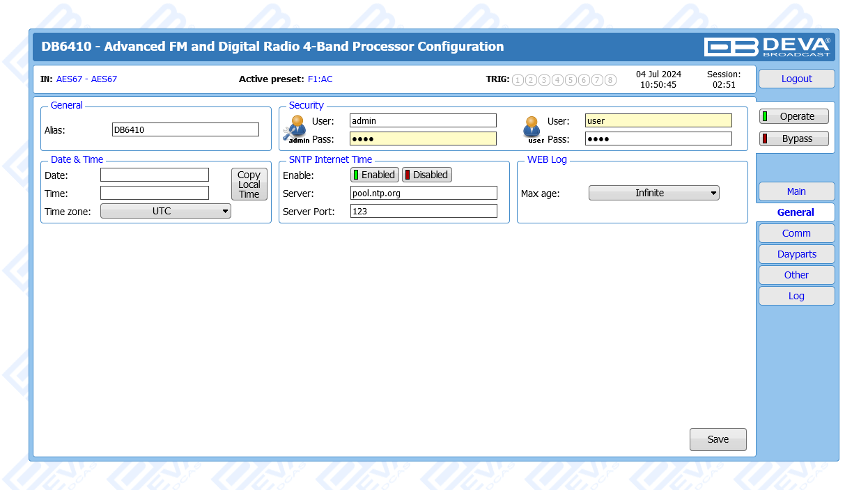 Support for AES67 Audio Sources: The DB6410 fully supports AES67 audio sources, making it highly versatile and capable of seamless integration into modern audio environments. This feature ensures compatibility with a wide range of networked audio systems, enhancing its utility and flexibility.