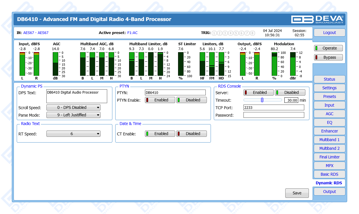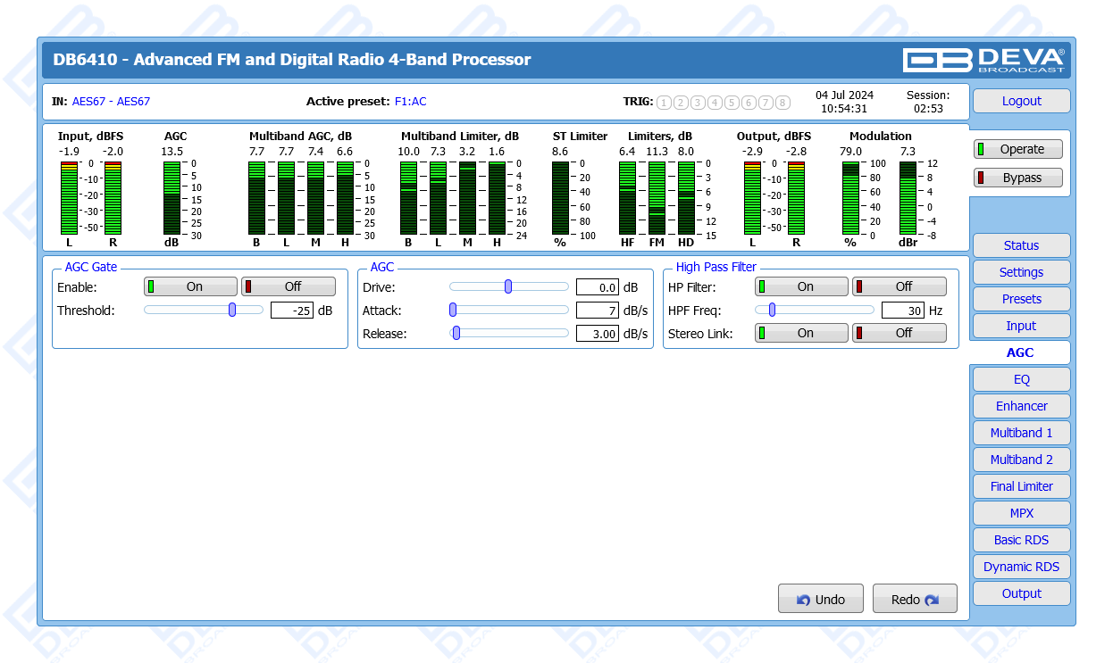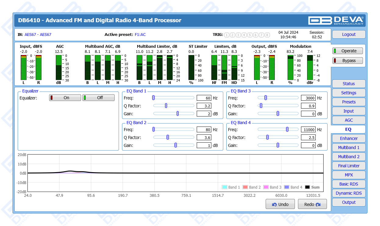 Advanced FM & Digital Radio, AES67 Compatible 4-Band Audio Processor