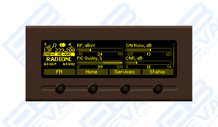 | Quality indicators | RSSI, SNR, CNR, FIC Quality, FIB Errors, FFT Offset |