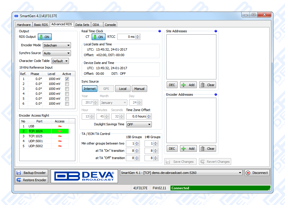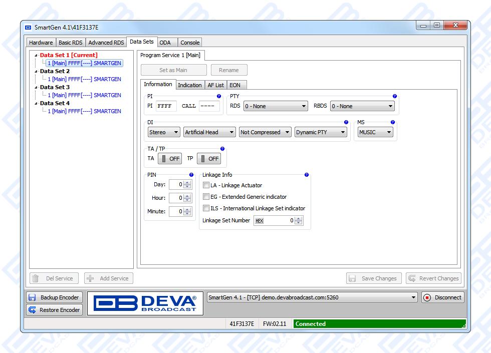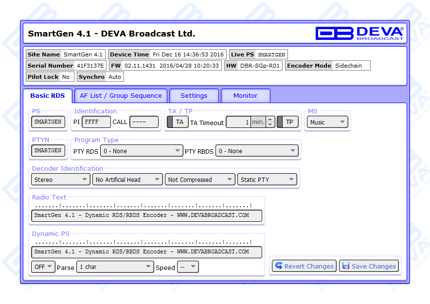 NexGen is software fully compatible with several devices from DEVA wide range RDS/RBDS product line. In order for the correct settings to the encoder and software to be applied, kindly refer to the RCS NexGen and Prophet settings for SmartGen RDS/RBDS Encoders document which can be found in the download section.
