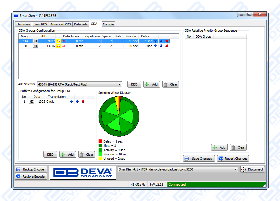 It supports a wide range of interfaces as RS-232, USB and LAN. The SmartGen Manager has “Basic RDS” and “Advanced RDS” programming interfaces. Using its “Basic” Mode, all main RDS parameters can be easily programmed into the non-volatile memory of the RDS Encoder. The interactive simulator shows the outgoing scrolling messages exactly as they are displayed to the listeners.