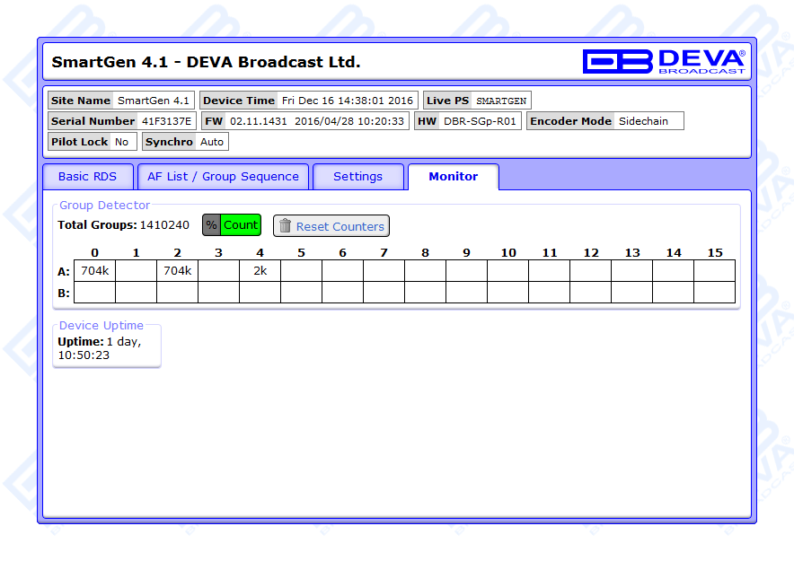 All DEVA Encoders, except for SmartGen Micro and SmartGen 3.1, are fully compliant with EBU SPB490 Ver.7.05. (UECP stands for Universal Encoder Communication Protocol for RDS.)